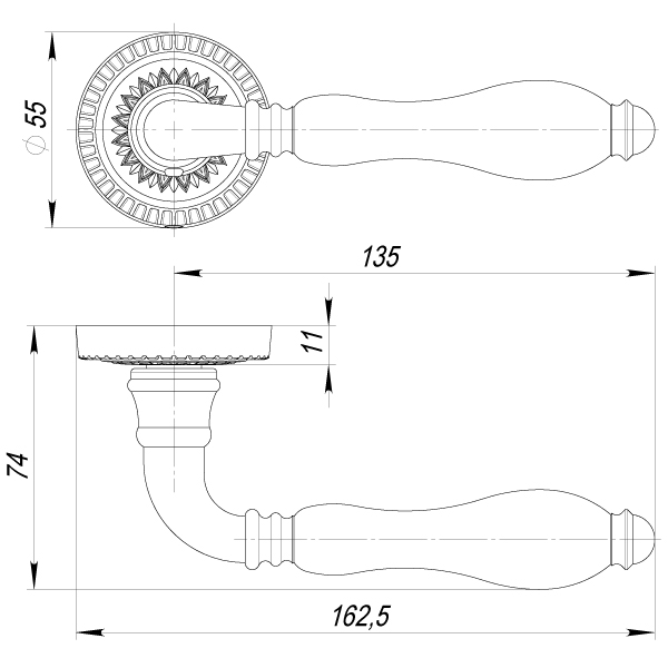 Ручка Armadillo (Армадилло) раздельная R.CL55.Silvia (Silvia CL1) AS/LWP-109 античное серебро/беж.фарфор