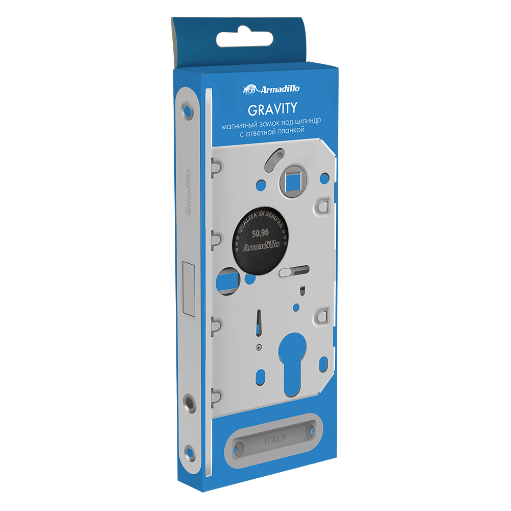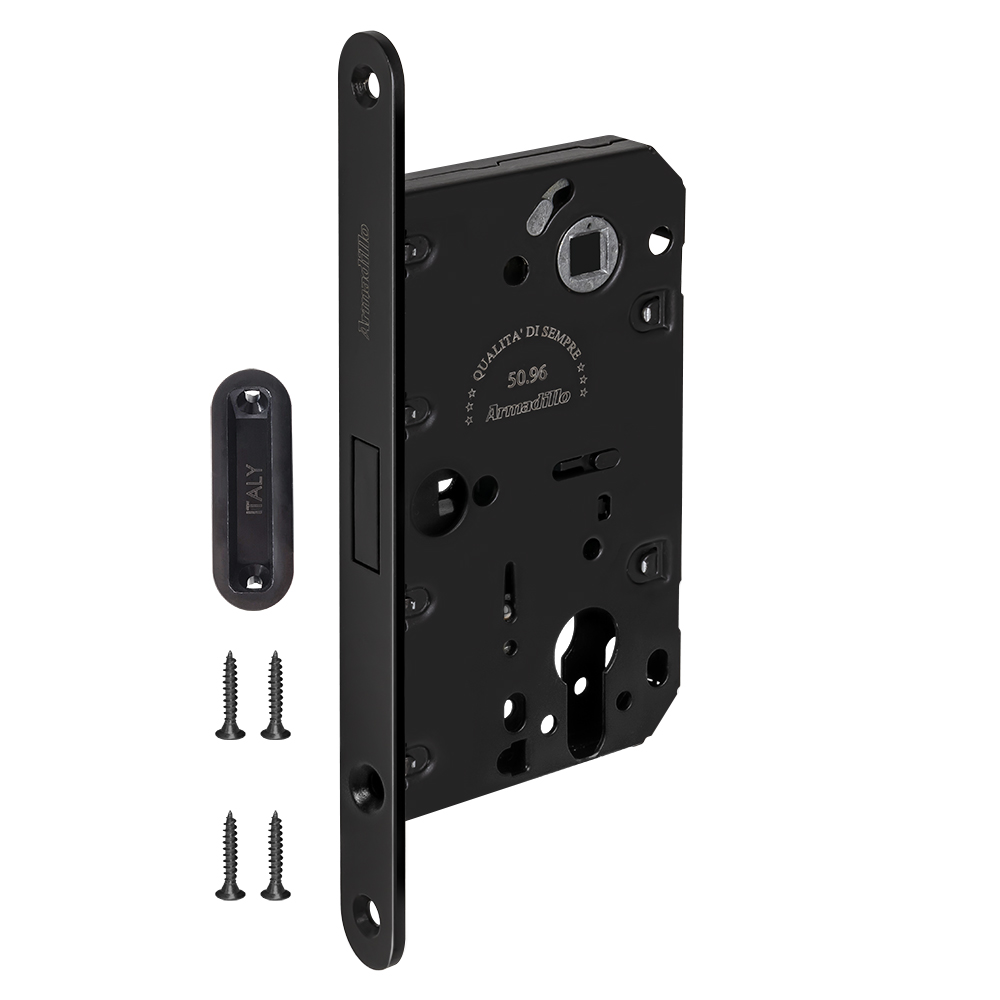 Замок Armadillo (Армадилло) межкомнатный магнитный под цилиндр с ответной планкой GRAVITY G02.196.50.85 BL черный