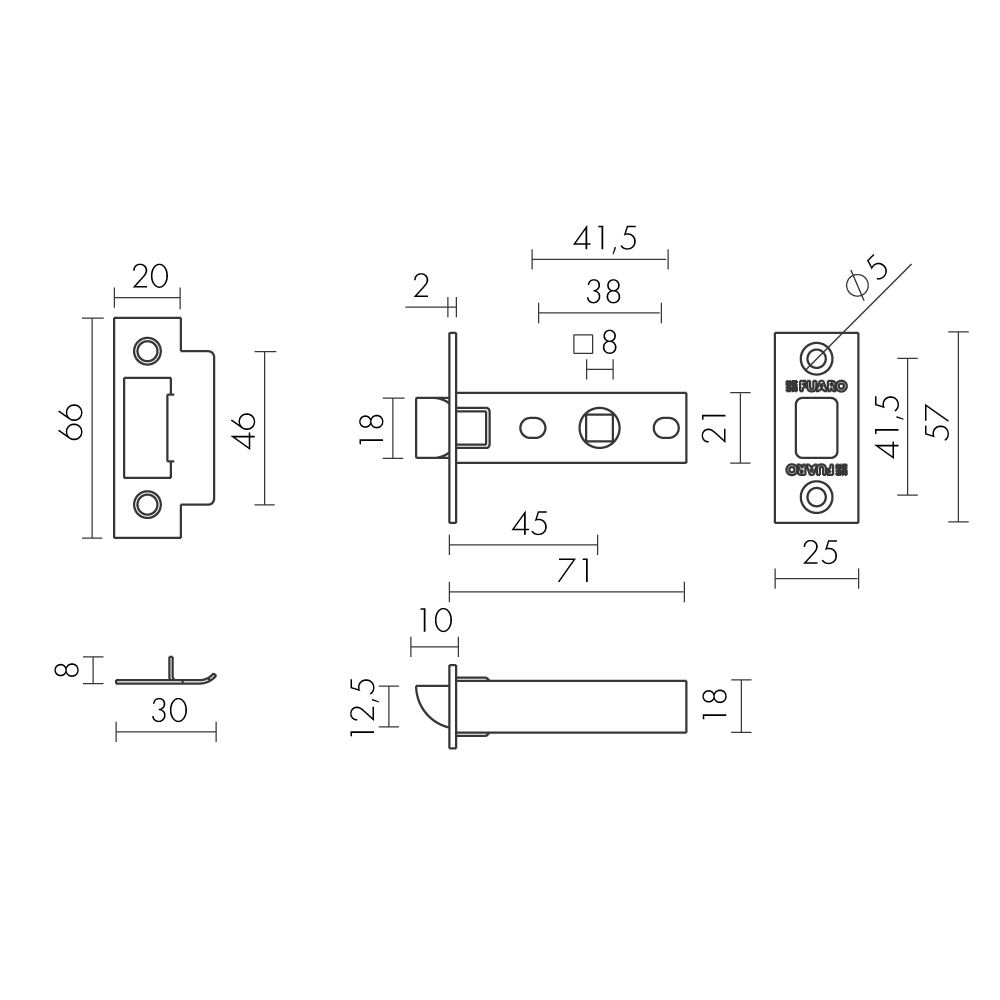 Защелка Fuaro (Фуаро) врезная METF12-45-25 (F12-45-25) BL черный